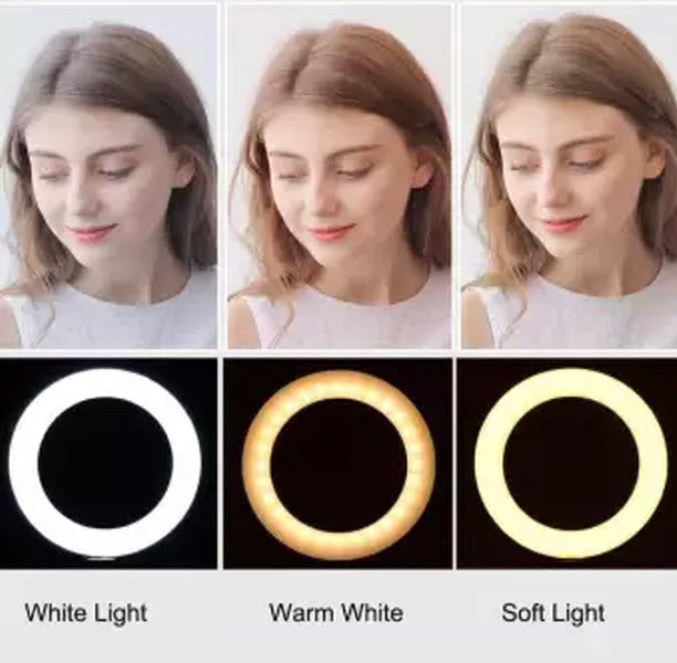 The 26 CM LED Studio Camera Ring Light Photography comes with the 3 colors adjustable LED strip with color temperature ranging from 3300-5600K. It means that the 26 CM LED Studio Camera Ring Light Photography features 3 different shades as the Day Light, Warm Light and Cool Light.