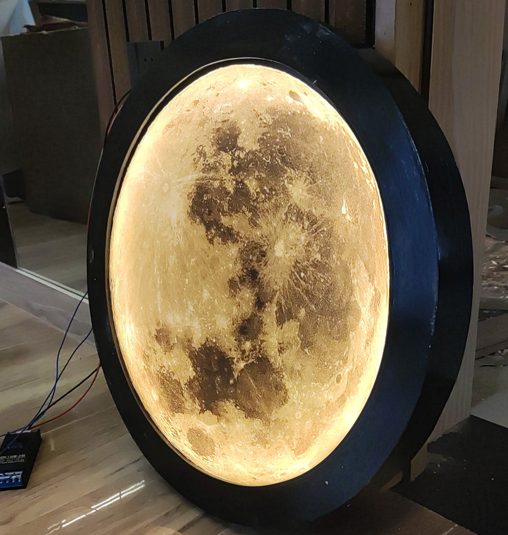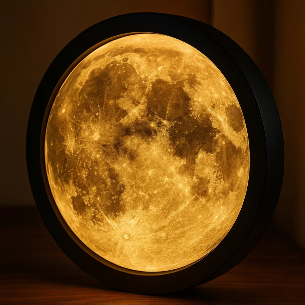 3D Decorative Wall Lamp – Wooden Frame Moon Light for Modern Interiors