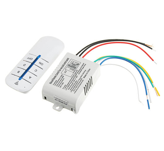 The 4-Way Remote Control Switch, as the name clearly indicates is a revolutionary product designed to switch ON/OFF the electrical appliances wirelessly. Yes, you've heard us right, this device is accompanied by a wireless remote control that you can use to switch ON/OFF any electrical gadget from a distance. The device consists of two components: transmitter and receiver. You have to connect the electrical wirings with the receiver.