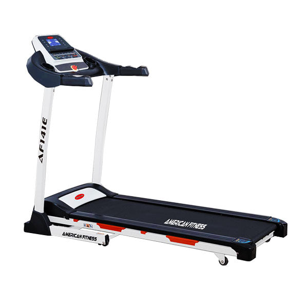 The American Fitness Running Machine AF-141E has a maximum speed up to 14 Km/Hr and it has a total running surface area of 1300 x 410 mm. The treadmill machine is equipped with the dedicated LCD display that shows different real time readings related to exercise as the Time, Speed, Distance and so on.