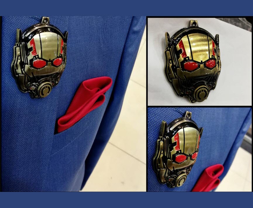 The Antman Lapel Pin is made from the durable metal it is designed to use on coats and other formal dressings. The Antman Lapel Pin is painted in multi colors, so it looks nice on almost all dressings with ease.