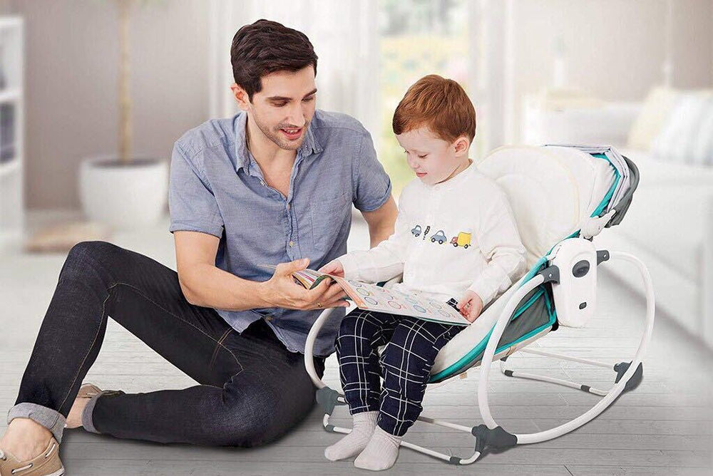[gallery link="file" columns="4" ids="20550,20549,20544,20545"]5 in 1 rocker & bassinet is the solution of all problems that you use to face with a new born baby. Its padded sheet and border allow your baby to get comfortable and secure sitting and sleep. you can convert it into a rocking chair and cot in no time. Soft vibration and music with hanging soft toy bring smile on your babies face and allow your babies to develop their skill and play independently.