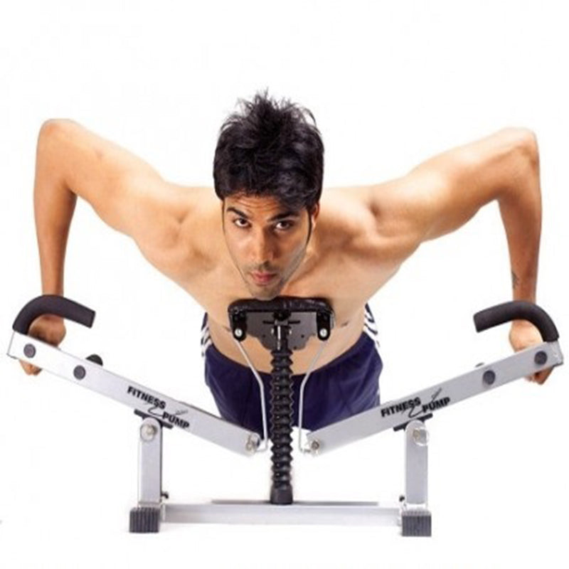 Fitness pump is the new fitness equipment designed to strengthen and develop your chest, biceps, triceps, deltoids, lats, and for toning abs & legs. This allows you to leverage the classic push-ups with more ease and less fatigue. Fitness pump makes the muscles work twice with the same force, reducing the body weight by 50% and allowing you to maintain a good posture for your back.