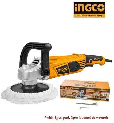 The Ingco Buffing - Polishing Machine 7 Inches 1400 Watt is powered by the 1400 watt powerful motor and it has a total no load speed up to 900 – 3800 RPM. The Ingco Angle Grinder Polishing 1400 Watt features the durable aluminum gear box and it supports the 7 Inches disc diameter.