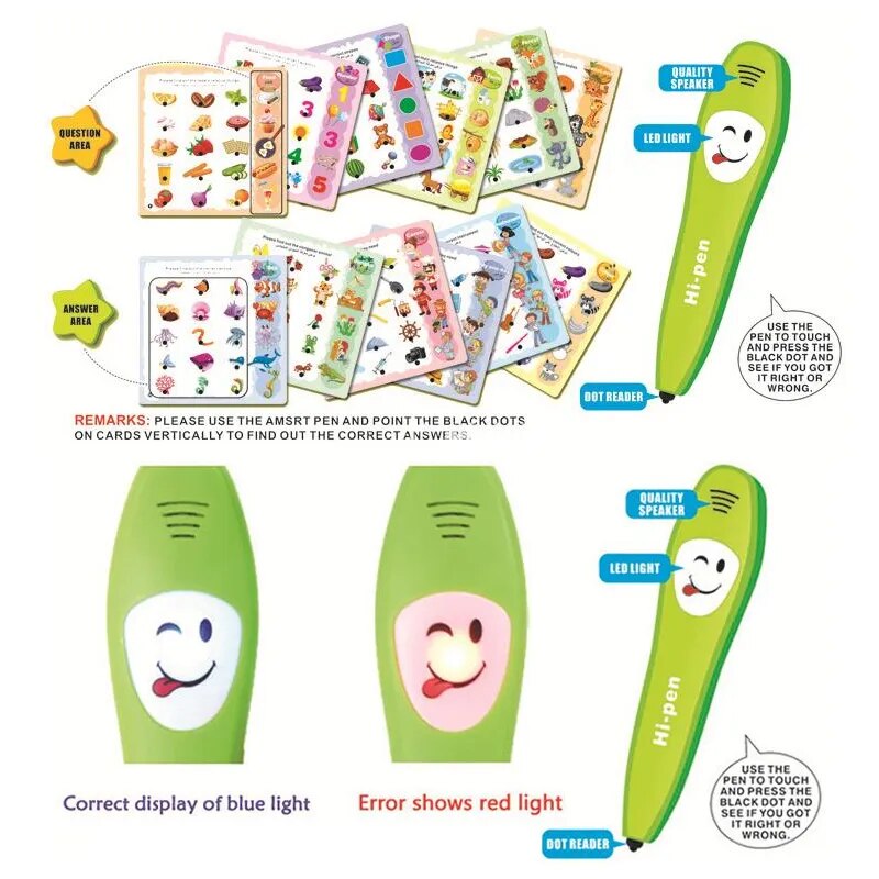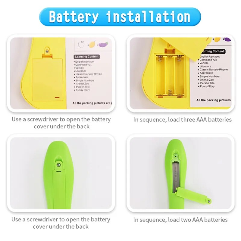 The learning book contains different content like English Alphabet, Common Fruit, Vehicle, Simple Numbers, Animal, etc.Intelligent Learning Book can improve children's hands-on, thinking and hearing ability. Inspire children's potential and