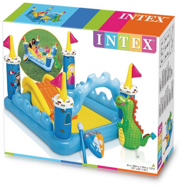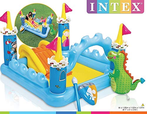 The Intex Inflatable Fantasy Castle Play Center Pool, as the name clearly suggests, is a premium grade inflatable castle and pool designed for kids over 3 years of age. The Intex Inflatable Fantasy Castle Play Center Pool 57138 consists of a beautiful playing castle, dragon and a water slide.