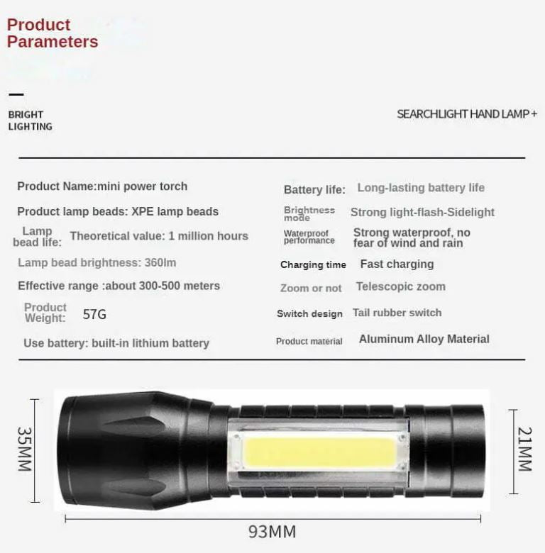 High Power Flashlight, 350 Lumen High Brightness LED Flashlight, Brightest High Powered Flash Light, Suitable for Camping, Hiking, Running, and Tactical Activities High Brightness Flashlight: Upgraded XHP70.2 LED beads and COB provide