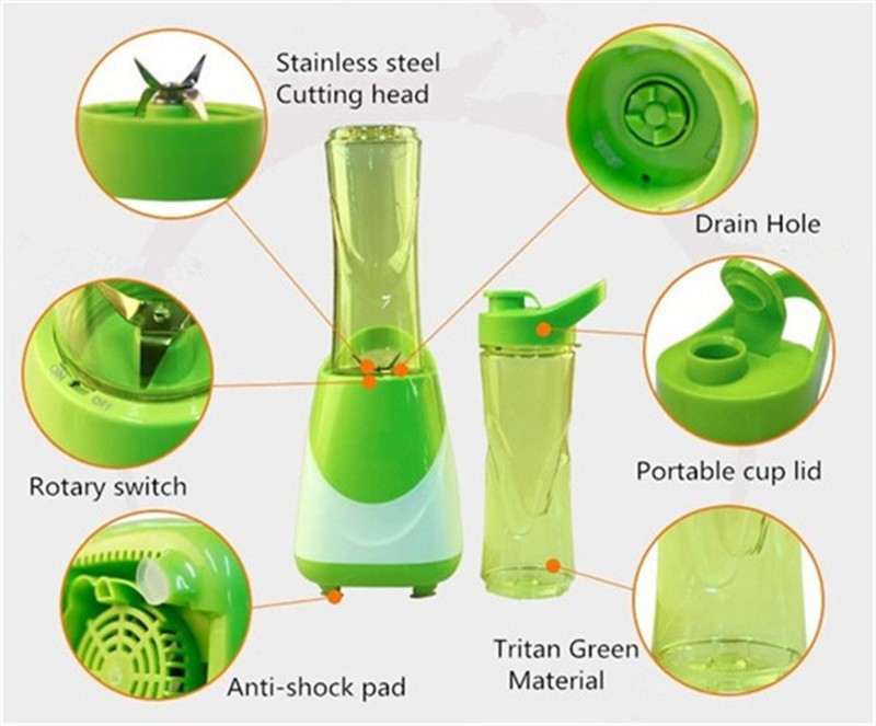 - Powerful juice blender with transparent sports bottle