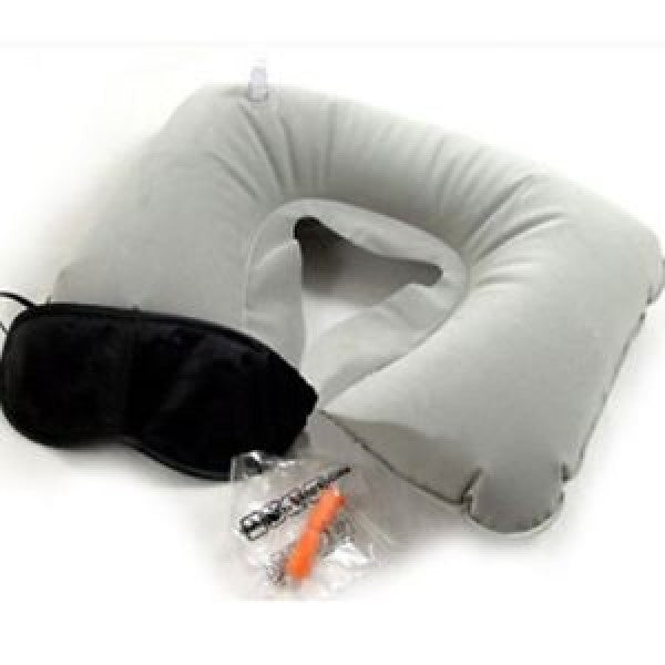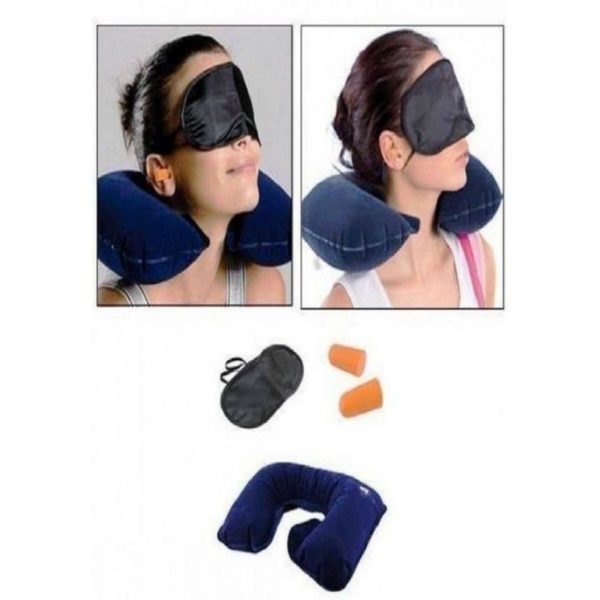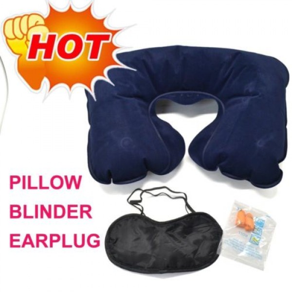 - Features the blinder, a pair of two ear plugs and an inflatable pillow