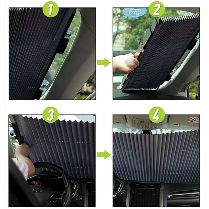 The Auto Universal Car Retractable Windshield Sun Shade For Car 45 cm, as the name indicates, is a top of the line Car Retractable Windshield Sun Shade design to dissipate heat from the car that gathers through the windshield of the car during parking.
